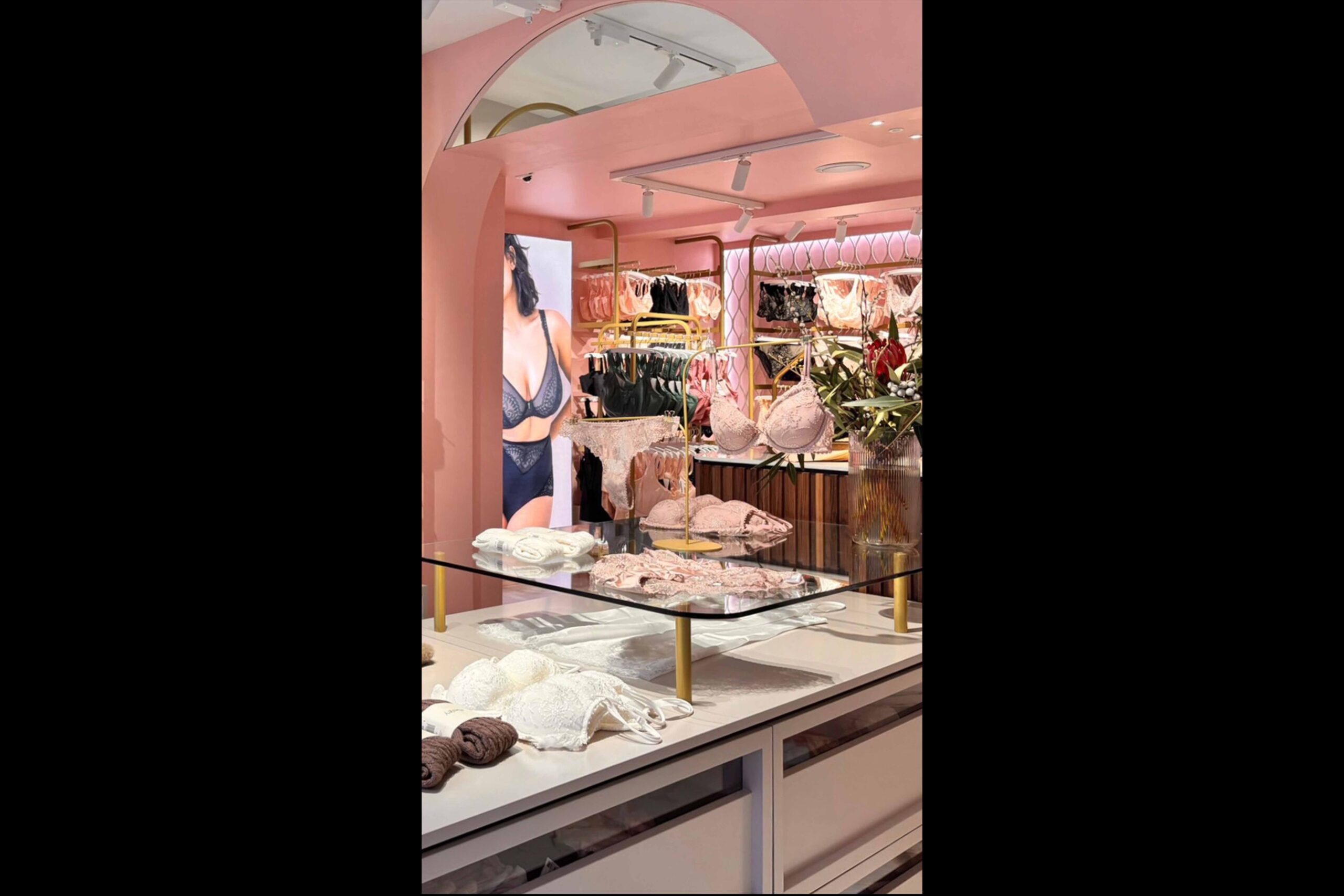 Een belangrijk onderdeel van het nieuwe concept is de integratie van innovatie binnen de winkelbeleving. In de Guildford boutique wordt de Bra Size Scan geïntroduceerd: een snelle en gebruiksvriendelijke tool die klanten in staat stelt om in minder dan twee minuten hun juiste maat te bepalen. De architectuur ondersteunt deze technologie op een vanzelfsprekende manier, zodat innovatie en design elkaar versterken zonder de intimiteit van de ervaring te verstoren.